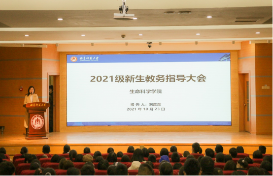 教务办公室负责人刘彦彦老师为2021级全体新生进行教务指导。