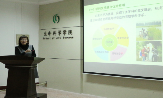 的基本情况和生态学的专业概况,指出了了本学科的建设和人才培养方向,增强了学生对专业领域的认识和理解。随后,苏涛老师对生态学专业培养方案进行了解读,围绕培养目标与要求、学制与学分、学分分配、课程体系等主要内容,对新生开展专业教育。会上,王庆贵教授作了以“话说生态学:过去、现在和未来”为题的报告,介绍了生态学的基本内涵、生态学的起源、现状和未来趋势以及对生态学的前景展望。最后,王教授耐心解答了同学们提出的问题,使同学们受益匪浅。
