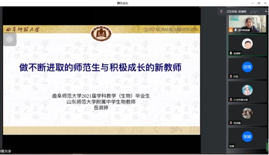 2019届优秀毕业生岳淑婷作题为《做不断进取的师范生和积极成长的新教师》的线上讲座,讲座由院长助理燕艳主持。生物科学专业师范生及学科教学(生物)专业研究生参加了本次讲座。