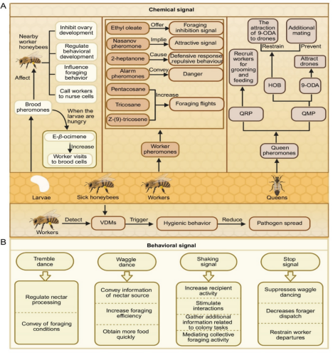 注:图为蜜蜂种内交流的化学信号和行为信号