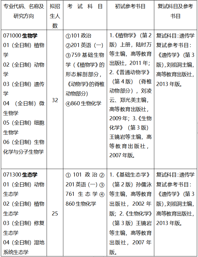 从2000年开始招收生物学课程与教学论方向的研究生,2001年招收动物学硕士研究生,2011年获批生物学、生态学两个一级学科硕士学位授予点,2018年获批生态学一级学科博士学位授予点。现可招收生物学、生态学、生物学课程与教学论三个专业的学术型研究生和学科教学(生物)方向的专业学位研究生。目前在校研究生、教育硕士近200人。
