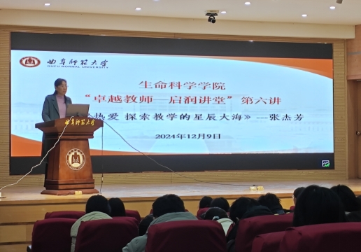 “卓越教师—启润讲堂”第六讲报告会在孔子会堂举行。报告会邀请了山东省特级教师、淄博市临淄区实验中学生物学教师张杰芳做题为《怀揣热爱 探索教学的星辰大海》的报告。报告会由副院长燕艳主持,学科教学(生物)研究生及生物科学(师范)部分本科生参加了本次报告会。