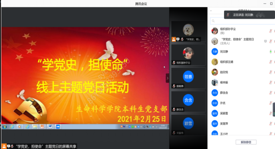 2021年2月25日,我院本科生党支部借助腾讯会议平台开展了“学党史,担使命”线上主题党日活动,支部全体党员参加了本次活动。