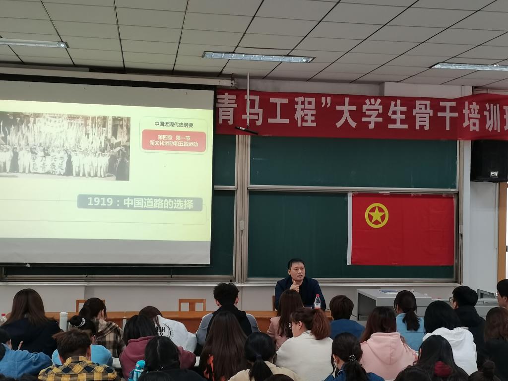 仪式结束后,朱斌老师为学员们作了第一场党史知识讲座。他用生动形象的语言讲述了新文化运动、五四运动的背景及意义,从“变动的世界”、“岔路口的中国”等角度对中国道路的选择进行了详细的阐述,用完整的历史事实和严密的历史逻辑论述了中国共产党取得胜利的历史必然性。
