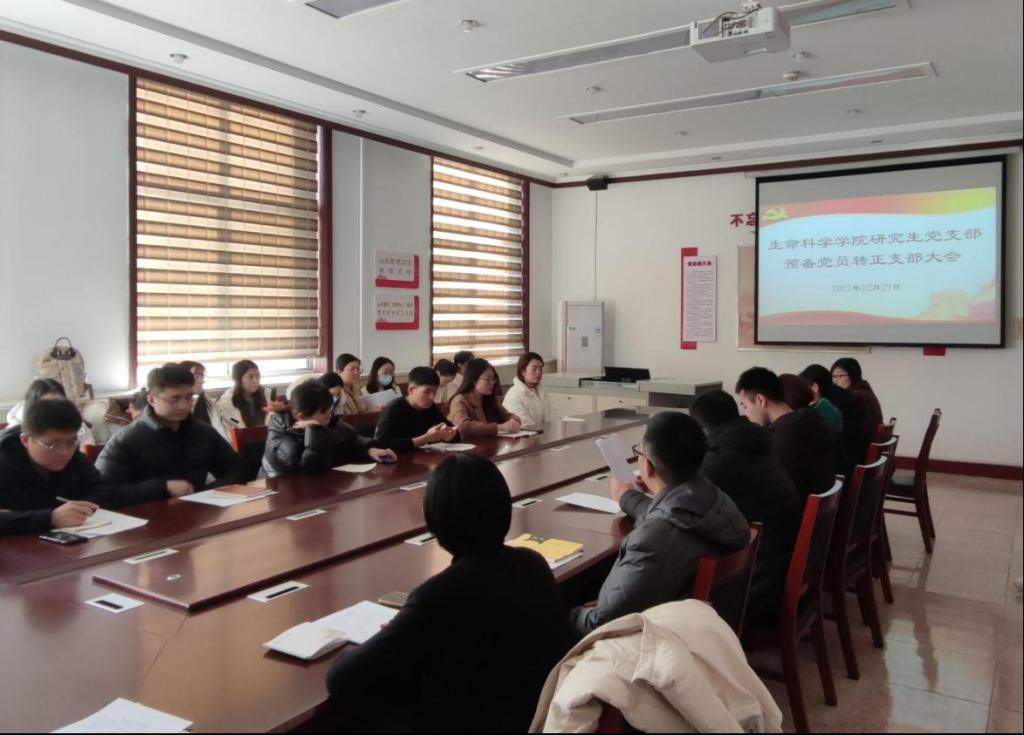 研究生党支部于2021年12月29日下午在生物楼208室3点,召开预备党员转正支部大会。会议由党支部书记燕艳同志主持,全体研究生党员参加。