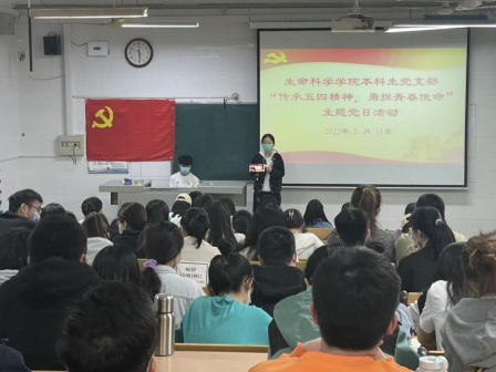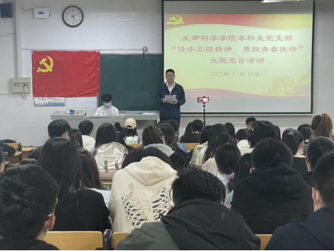 本科生党支部于生物楼128室举办“传承五四精神,勇担青春使命”主题党日活动。本次活动由党支部书记杨申振同志主持。