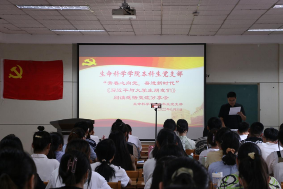 本科生党支部于生物楼232室开展“青春心向党,奋进新时代”《习近平与大学生朋友们》阅读感悟交流分享会主题党日活动。本次活动由党支部书记杨申振同志主持。