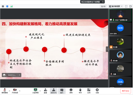 党委书记李志广主持。本次集中学习通过线上形式以“书记讲党课”的方式开展。党委理论学习中心组全体成员、全体教职工参加。