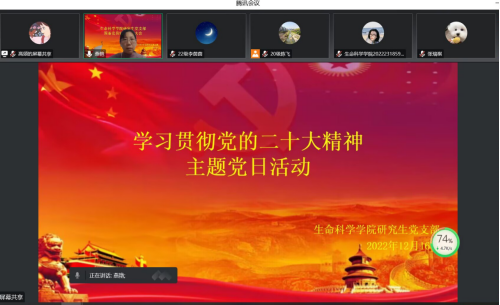 研究生党支部于2022年12月16日下午4点30分开展学习《二十大报告里看未来:如何理解“中国式现代化”》主题党日活动。活动采取线上形式,由研究生党支部书记燕艳主持。
