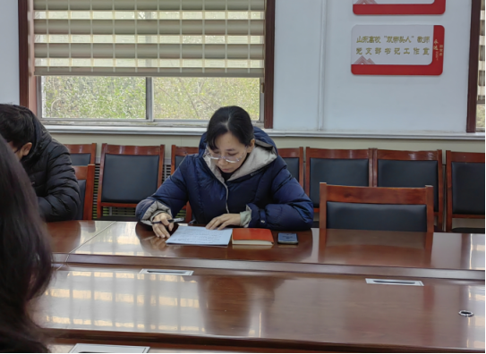 教工党支部书记辛玉峰、研究生党支部书记燕艳、本科生党支部书记杨申振从个人履职情况、党支部建设情况和成效、思想政治工作情况以及支部建设存在问题和下一步工作思路和举措等方面依次进行述职汇报。