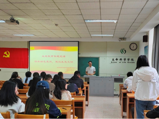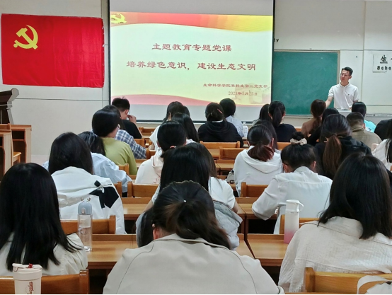 本科生第二党支部于生物楼232室开展“培养绿色意识,建设生态文明”主题教育专题党课。
