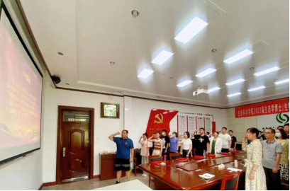 为时刻保持初心,在不同岗位上奉献自己的青春力量,全体党员在博士毕业生党员王立东的带领下,重温入党誓词。
