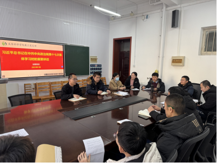 223会议室召开了学习习近平总书记在中共中央政治局第十七次集体学习时的重要讲话的主题党日活动。本次活动由教工党支部书记高配科同志主持,教工党支部全体党员参加。