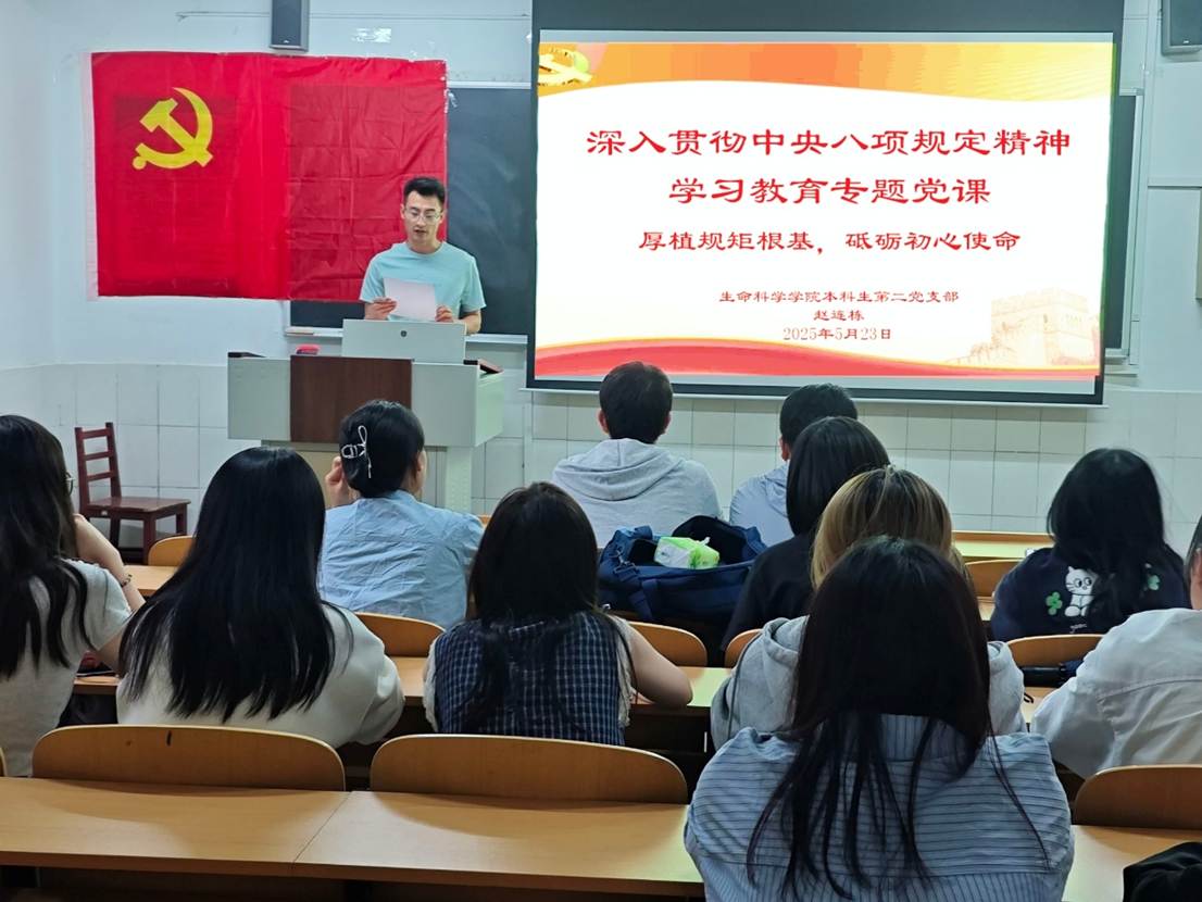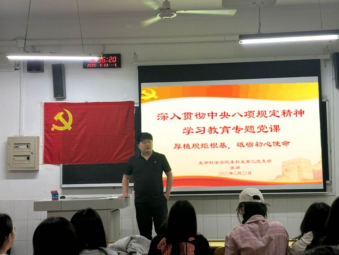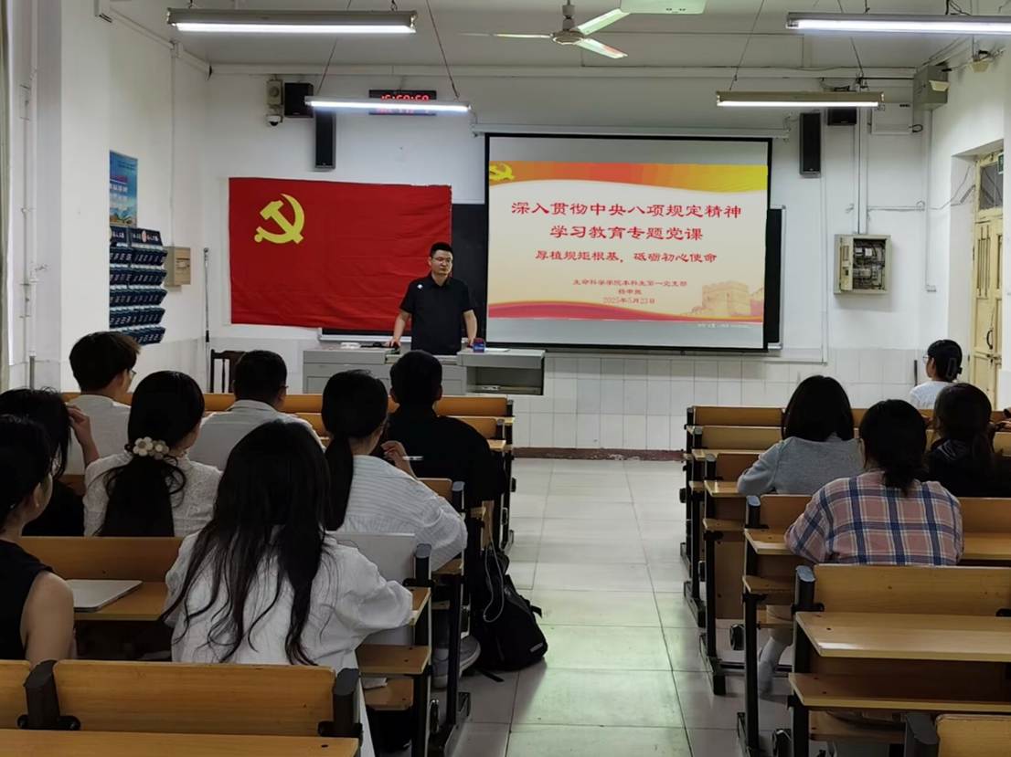 本科生第一、二、三党支部在生物楼分别开展“厚植规矩根基,砥砺初心使命”深入贯彻中央八项规定精神学习教育专题党课。
