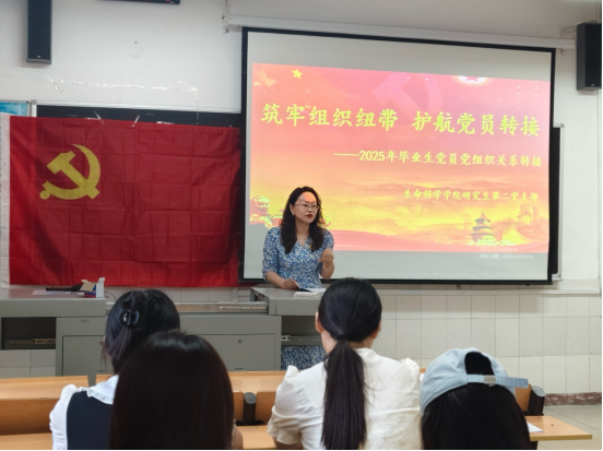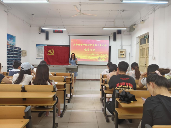 研究生第二党支部在生物楼131教室召开党员大会,会议主题为“筑牢纽带意识,护航党员转接”。会议由支部书记郭春晓主持,支部全体党员参会。