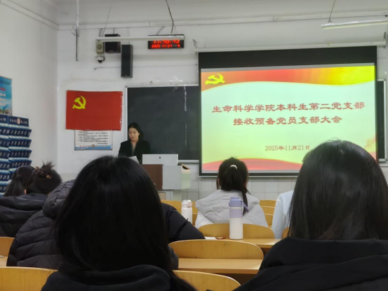 本科生第二党支部于生物楼229室召开接收预备党员支部党员大会,第二党支部全体党员参会。