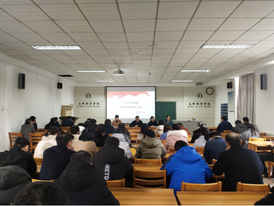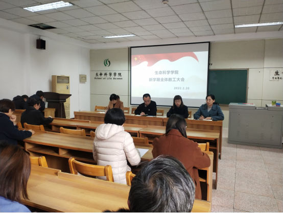 在生物楼232教室召开新学期教工大会。会议由院党委副书记张明洁主持,全体教职工参加会议。