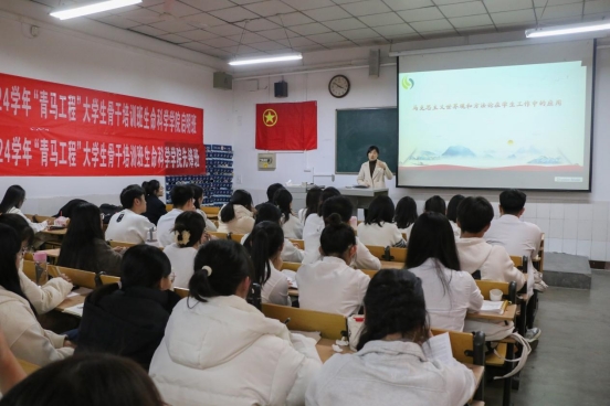 党委副书记张明洁以“马克思主义世界观和方法论在学生工作中的应用”为题,向大学生骨干讲授思想政治课。她从矛盾的普遍性和特殊性的统一、矛盾是对立统一、矛盾是事物变化发展的根本原因、善于集中力量解决主要矛盾等四个方面进行了深入浅出的讲解,帮助同学们进一步理解和掌握马克思主义世界观与方法论对于学生工作的指导性和实践性,自觉用科学理论指导学习、工作和生活。授课中,她结合大量具体工作案例,引导同学们学会运用马克思主义的立场、观点、方法分析和解决实际问题,并激励学生骨干立足自身工作实际,做到正确对待问题、具体问题具体分析,不断改进工作方法,不断追求卓越,做更好的自己,取得更突出的工作成绩。