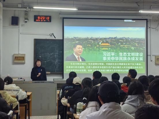 院长王仁君以“生态文明建设事关中华民族永续发展”为题,带领学生深入学习了习近平生态文明思想,加深对习近平生态文明思想的深刻内涵和战略意义的理解。她讲到,作为生命科学领域的学生,要深刻理解生态文明建设关乎人类未来的重要性,要主动肩负为国家生态文明建设贡献力量的职责和使命,坚定树立“建设绿色家园、建设美丽中国、加快推进人与自然和谐共生的现代化”的信念,主动接过重担,共同发力,建设绿水青山家园,建设繁荣富强的祖国。