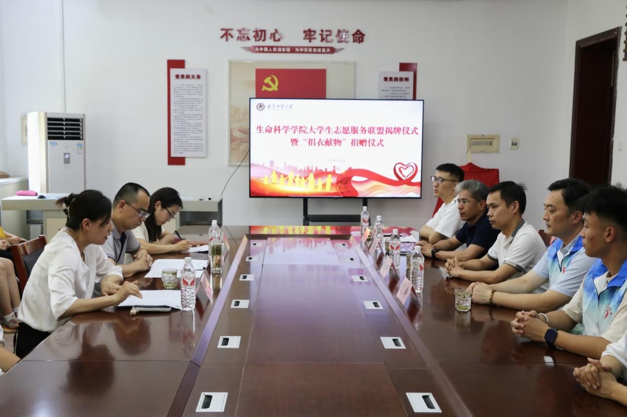 大学生志愿服务联盟揭牌仪式暨“捐衣献物”活动捐赠仪式于生物楼208会议室隆重举行。