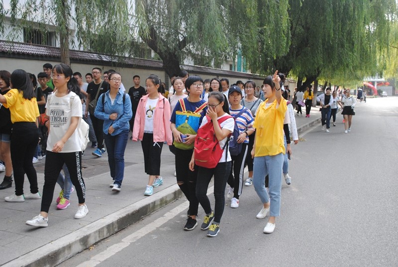 团委学生会志愿者服务队发起的“曲园——梦想启航的地方”活动选拔出的导游带领2017级新生游园。