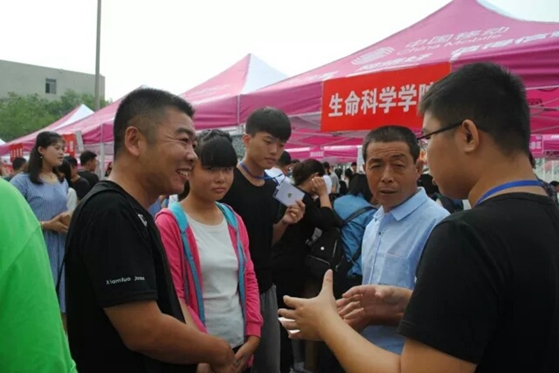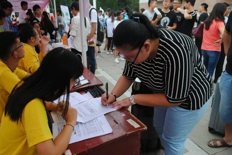 分别在生物楼大厅和孔子文化广场设立接待站。辅导员老师在暑假期间就通过网络等方式与绝大部分新生提前取得联系,提醒新生报到注意事项。新生到校后,只需到足球论坛