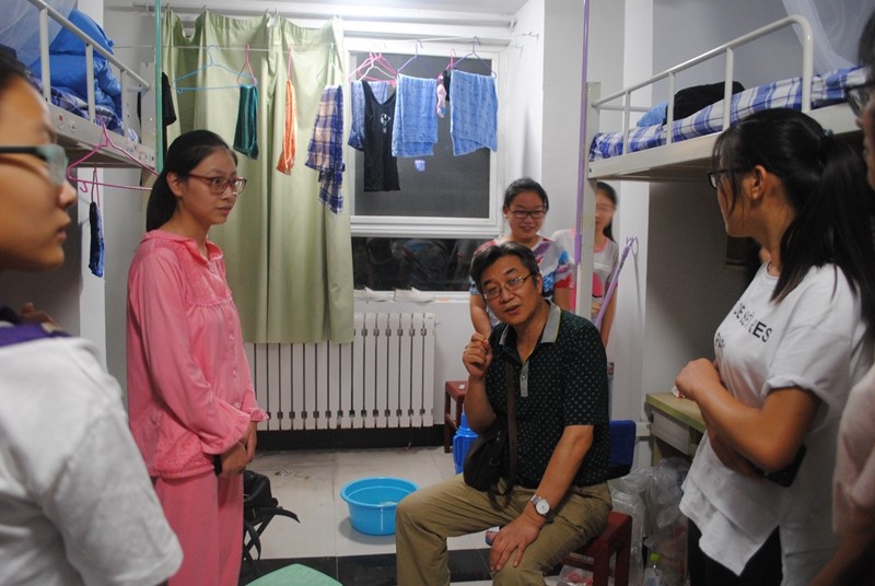 的志愿者们在17号下午举行了游园活动,师姐们热情地解答着小同学们的问题,一片和谐团结的景象。院系领导考虑到新生们初入曲园,会有对未知大学生活的惶恐,远离家乡对父母的思念,特意在17日晚到宿舍慰问同学们,让他们感受到老师对他们的关心,感受到曲园的爱与温暖。