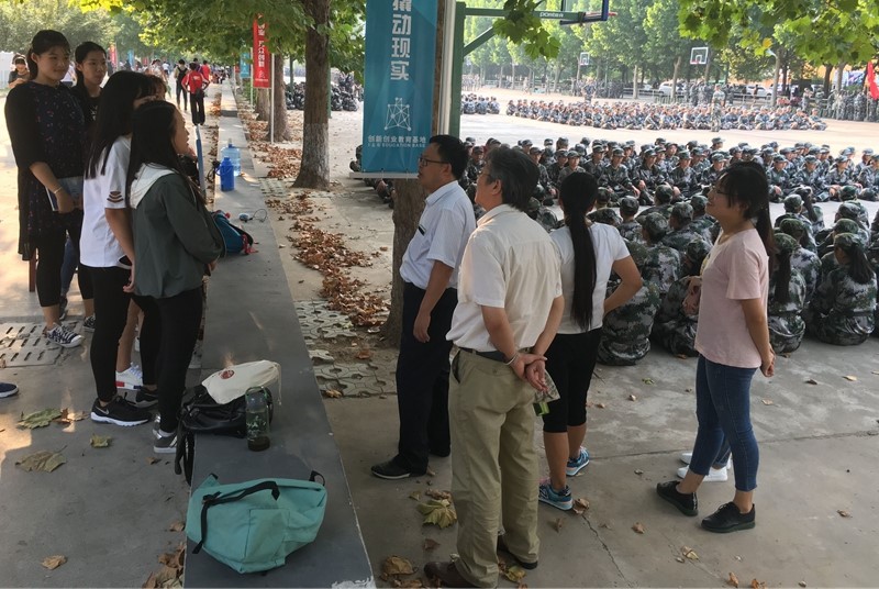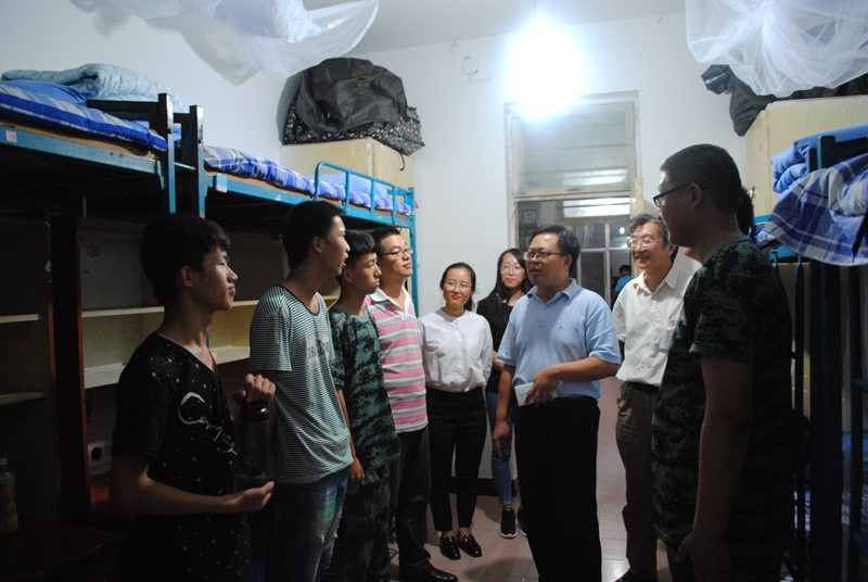 领导从迎新工作场地到新生宿舍,再到军训现场,现场检查和指导工作,关心关爱新生的住宿、生活,看望学生,悉心照料晕倒的学生。
