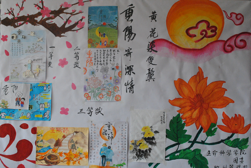 团委学生会举办的“黄花染双鬓,重阳寄深情”活动正式拉开帷幕。本次活动面向2016级和2017级全体同学。参赛选手根据活动主题“黄花染双鬓,重阳寄深情”进行作品创作,有与重阳节有关的原创诗歌、书信作品,也有与重阳节有关的画作。作品形式多样,风格多变,内容新颖,充分体现了同学们积极向上的精神风貌、高涨的热情和对重阳节浓浓深情。活动完毕后将优秀作品展示在生物楼一楼大厅供学生欣赏。