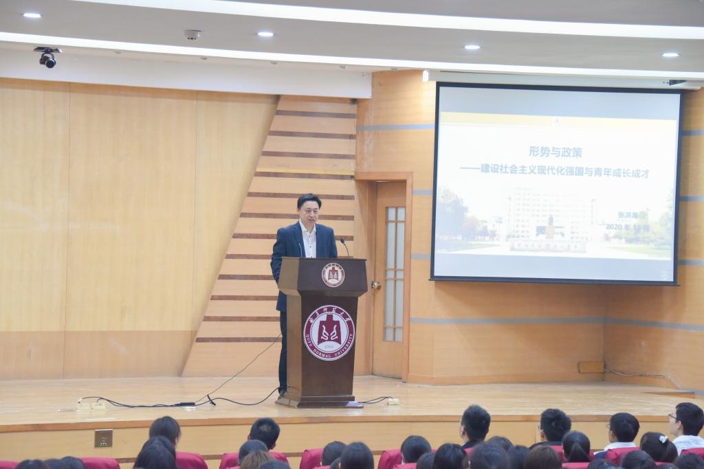 张洪海从决胜全面建成小康社会取得10方面的决定性成就、我国当前发展环境面临的国内国际深刻复杂变化、到2035年基本实现社会主义现代化的远景目标、“十四五”时期经济社会发展的指导思想和必须遵循的原则等方面向师生宣讲和阐释党的十九届五中全会精神。同时,张洪海结合落实立德树人根本任务工作精神,介绍了足球论坛