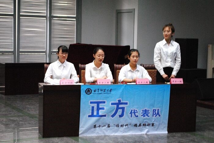 辩手此次担任的正方,辩题为“相比于保护文化,创造文化更重要”。比赛伊始,从开篇立论环节双方就针锋相对,我方一辩用词严谨,思路清晰,针对应该创造文化侃侃而谈,给观众留下了深刻的印象。接下来的攻辩和自由辩论环节,两方针锋相对,字字珠玑。针对对方的漏洞加以攻击,并且适当的提出自己的观点反驳,辩手热情高涨,场下观众激情澎湃,更是把比赛推向高潮。接下来四辩的总结陈词也精彩连连,获得掌声不断。最终经过双方势均力敌的较量和评委的集体商议,敲定最终结果。虽然足球论坛