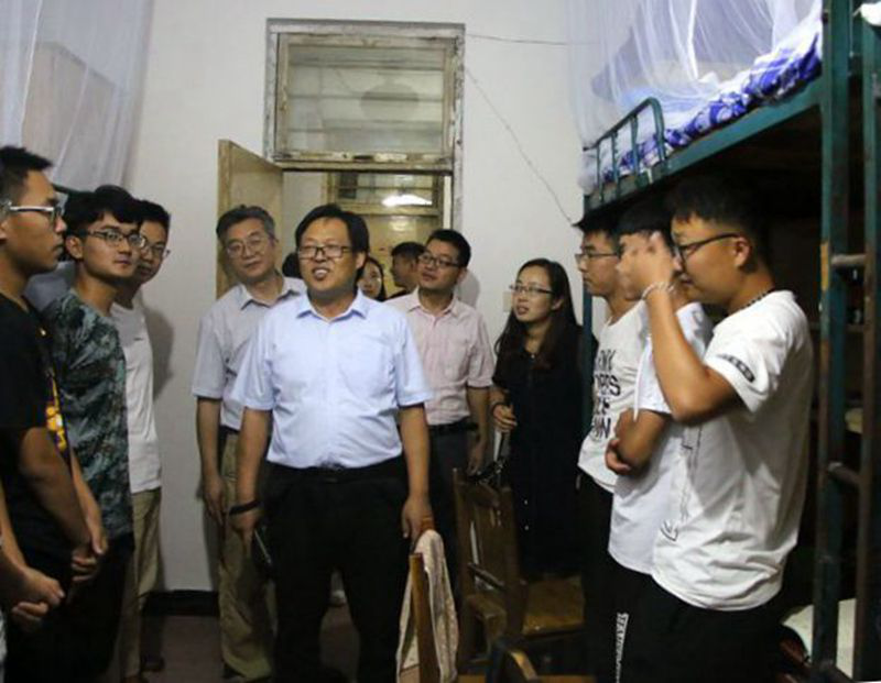 在西公寓发现一个女生宿舍的同学在紧张的备考英语分级考试,老师们给予了肯定,希望新生们学习她们这种分秒必争的学习精神。接着,老师们来到北公寓看望这里的男生。