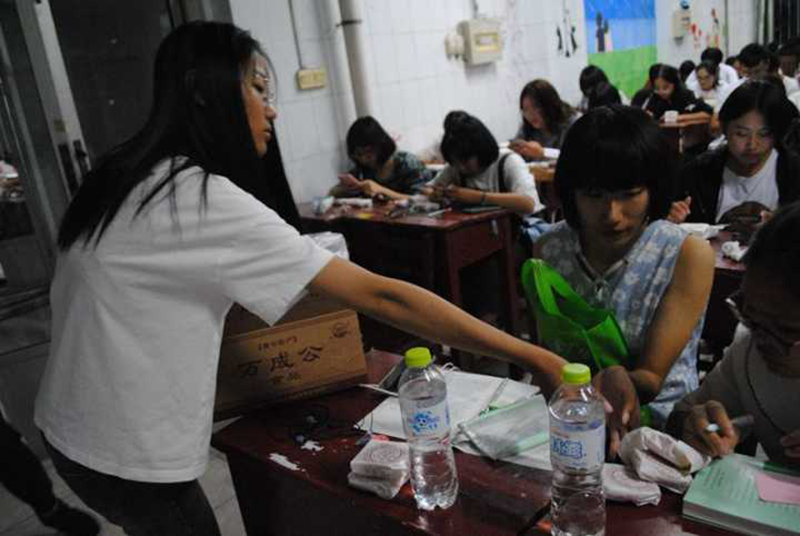 和蔼的老师,乐于助人的师哥师姐恰似这月饼温暖了这些离家的少年心。他们露出了开心的笑容并商量着要将承载曲园祝福的月饼传递给更多的人。