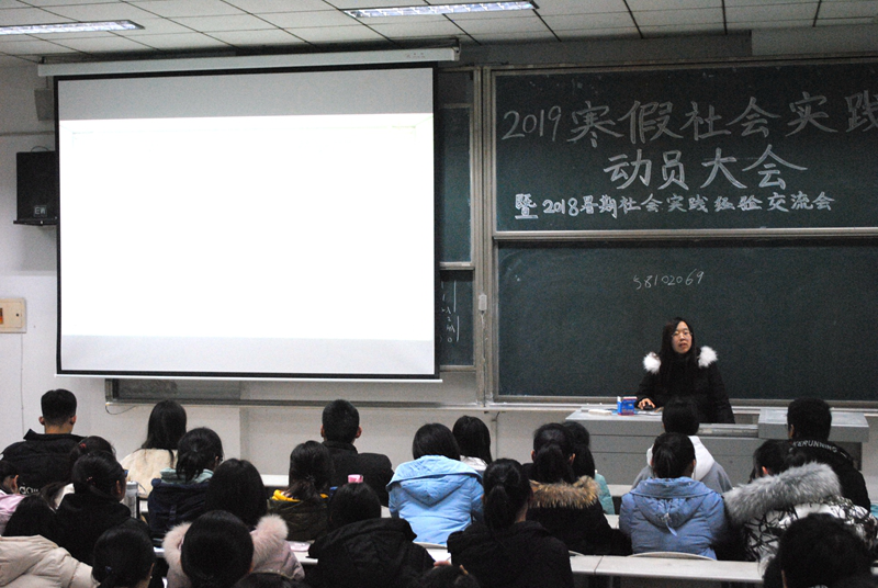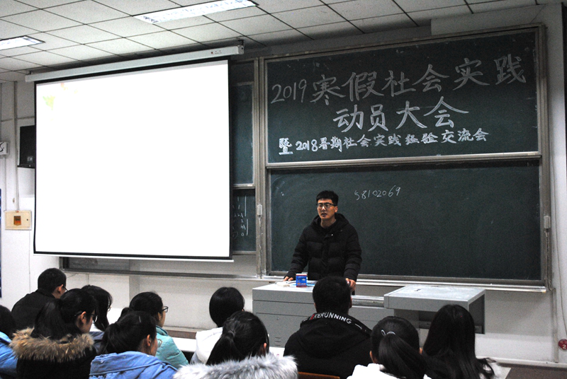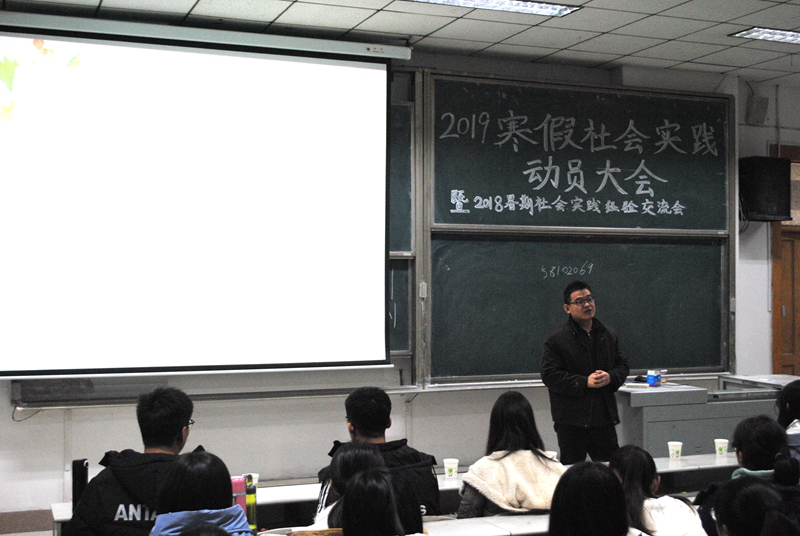 动员大会开场用精彩的开场视频回顾了今年暑期社会实践优秀团队实践的过程,团委书记刘洪铎老师对本次活动的组织和上次社会实践活动给予肯定,对参加2019寒假社会实践活动的同学们作出了动员,给予了鼓励,并提出了相关要求。随后,被邀请的部分暑期社会实践优秀团队代表分别用自己的切身体验讲解了社会实践中的心得收获,把经验技巧分享给大家。最后,社会实践部成员针对具体社会实践活动的准备工作及实践报告相关要求等内容做了详细的讲解和工作安排,希望大家认真细致开展好工作,切实注意安全,做好安全保障。