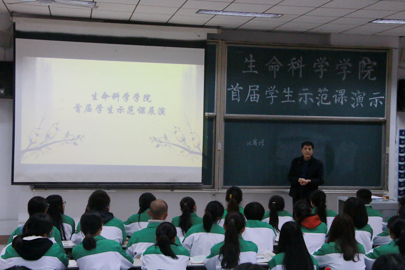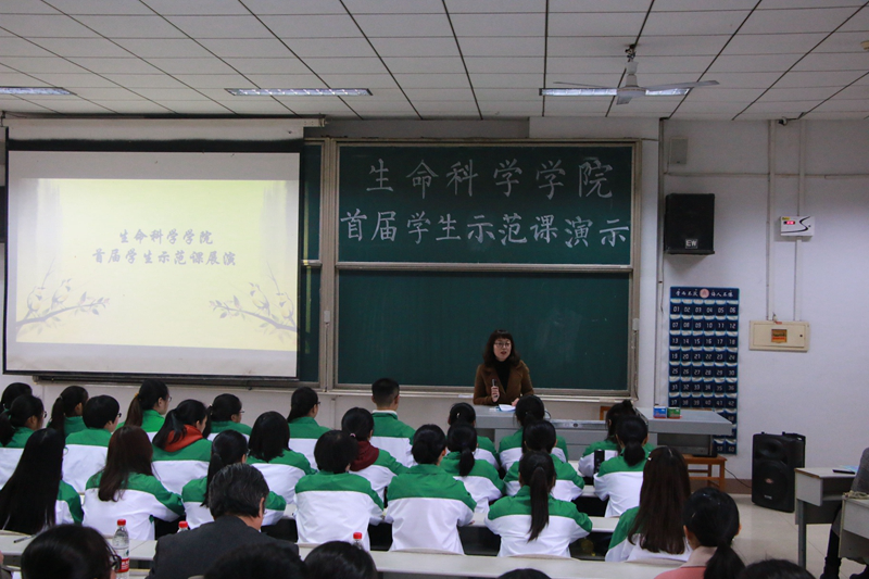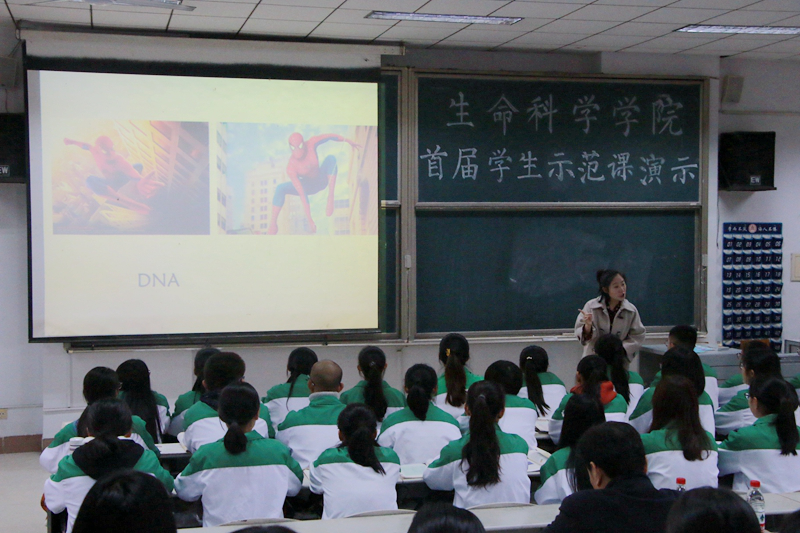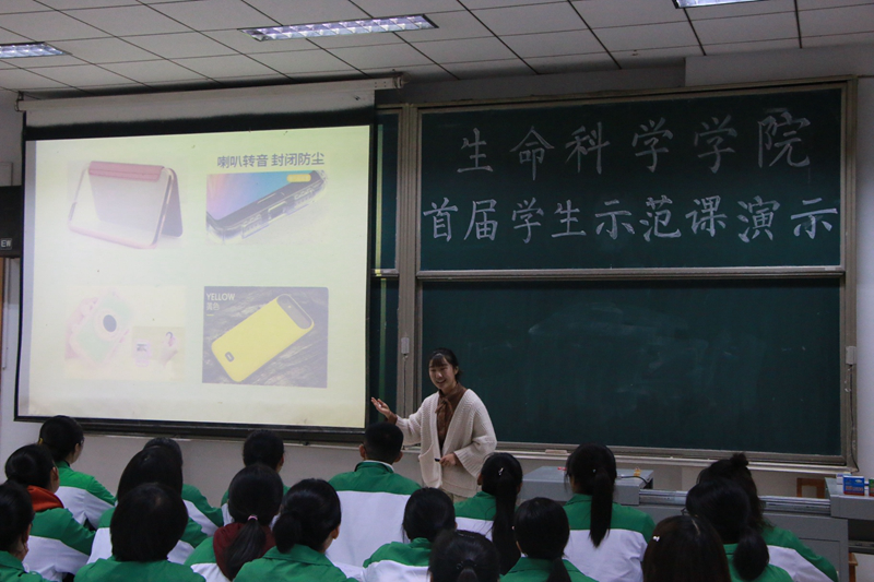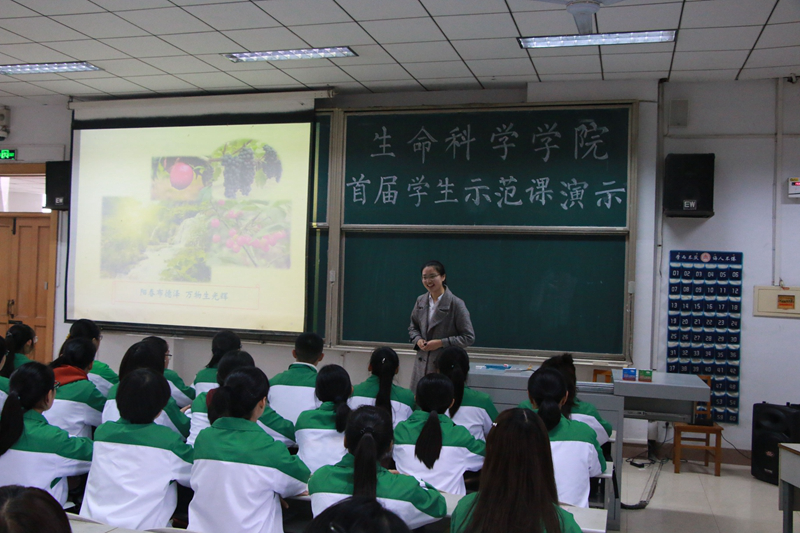 团委选择了在从业技能大赛中获得过特等奖、一等奖、二等奖的同学做授课展演。首先是岳淑婷同学,她讲解的是光合作用,洪亮的声音,简洁的语言,漂亮的板书,无不显示出她授课的规范性。接下来,由张飘飘同学做展演,她讲解的是转录,她凭借平易近人的姿态征服了现场的同学。张祥沛老师对这两位同学进行点评展演:两位同学技能精湛,内容精细,教学设计、理念新颖;同时对两位同学的不足提出了改进意见。而后,王美云同学和杨丽娟同学分别就鱼类和磷脂双分子层为大家做了授课展演,充分展示了她们扎实的专业技能与别样的授课风采。郭永峰老师分享了自己对授课大赛的理解并对两位同学进行点评展演。