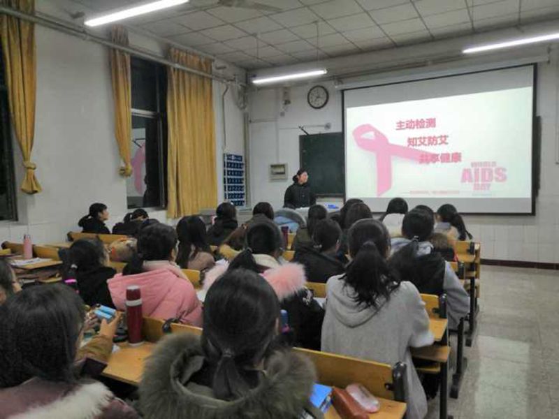 承办的“知艾防艾,共享健康”艾滋病宣传月系列活动。其中,2018级生物科学二班于11月1日积极响应举办了此次活动。