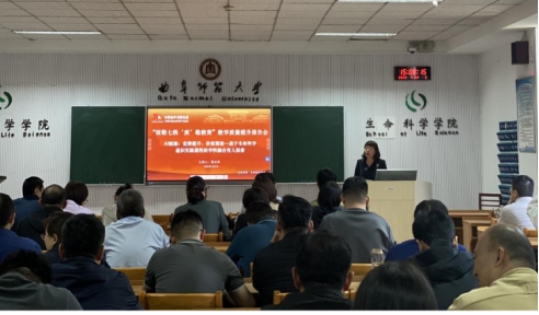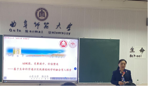 郭卫华以《AI赋能、竞赛提升、价值塑造——基于生命科学通识实践课程的学科融合育人探索》为题,从趣味实验课程切入,介绍了AI赋能生命科学实践类通识课程体系重构的“线下引入轻量AI、课堂用AI辅助生成知识图谱、实验开设虚拟仿真课程”重要举措。她指出,在当前时代背景下,要培养复合创新型人才,就必须加强学科融合育人,可以通过课赛结合的方式促进学科融合,实现以赛促教、促学,从面推进人才培养质的有效提升。她同时强调,学科融合育人要注重融入思政元素,创新多样教学法塑造学生价值观,以培养德才兼备、全面发展的创新型人才。