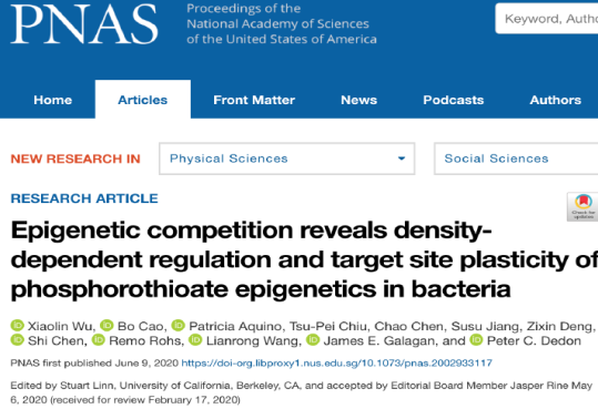 为第一署名单位;第二篇论文题为“Epigenetic competition reveals density-dependent regulation and target site plasticity of phosphorothioate epigenetics in bacteria”(doi:10.1073/pnas.2002933117), 发表在《Proc. Natl. Acad. Sci.》上,曹博教授为共同第一作者,足球论坛