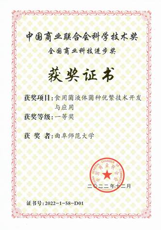 7月30日,由中国商业联合会主办的2023年全国商业科技质量大会在北京召开。李冠喜教授团队领衔研发的联合项目“食用菌液体菌种优繁技术开发与”荣获全国商业科技进步奖一等奖。