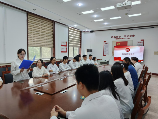 杜亚蓉作为新团员代表发言,承诺将牢记今日誓言,不断追求进步,不断超越自我,用实际行动书写属于新时代青年的崭新篇章。优秀团员代表刘士忠向新发展团员送上祝贺,号召全体团员坚定不移听党话、跟党走,以实现中华民族伟大复兴为己任,以时不我待、舍我其谁的使命感勇担重任,在新时代的广阔天地中磨砺青春、升华人生。