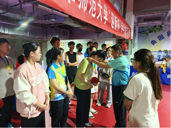 乒乓球队队员们奋力拼搏、全力以赴地对待每一场比赛,充分发挥了奋勇拼搏、永不言弃的乒乓精神,向全校展示了生科乒乓球手勇于进取的比赛精神。最终,2021级生物科学(师范)一班邓仲筱获得女单第一,2022级生物科学(师范)五班潘怡然获得女单第四,2024级生物科学(师范)M班宋尚轩获得男单第三的优异成绩。
