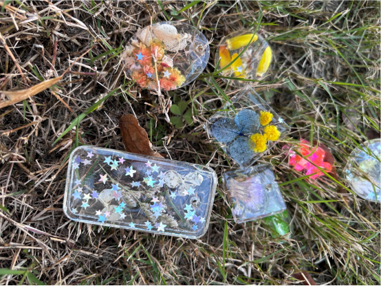 活动准备阶段,社团精心筹备,为参与者呈上了琳琅满目的材料宝库:滴胶、脱模模具、干花、落叶……活动伊始,社团讲解员为大家讲述滴胶的制作过程以及注意事项,随后,在师哥师姐们的指导下,社员们纷纷开启了属于自己的创意之旅。他们依照个人喜好构思样式,将晶莹剔透的滴胶缓缓倒入模具,再巧妙地嵌入不同的植物元素。制作过程中,讲解员为同学们一一解读手中的植物。活动结束时,每一位社员都得到了心仪的成品,也收获了对植物得全新理解。