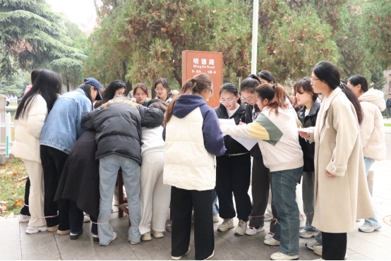 竞赛当日,现场气氛热烈非凡。参赛队伍三人一组,齐心协力地以三人四足形式迅速向各个闯关站点进发。在每个站点,都有热情的志愿者们手持题本等待着参赛队伍。到达站点后,参赛队伍从志愿者手中接过题本,快速寻找属于自己的题目。只见同学们有的迅速分工,一人负责念题,两人负责思考作答;有的小组则是围在一起,小声讨论后再确定答案,每个队员都全神贯注,争分夺秒。每答对一题,队员们的脸上便洋溢起自豪的笑容,手中的答题卡片也增添一枚代表胜利的贴画。比赛过程中,有的小组配合默契,一路过关斩将;有的小组虽遇到难题,但凭借冷静思考和团队协作,努力攻克。现场呐喊助威声此起彼伏,充分展现了同学们的热情与活力。
