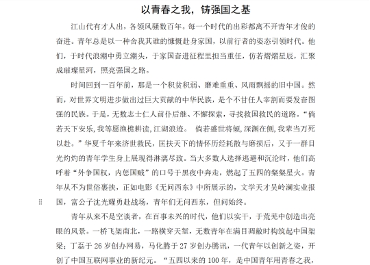 比赛正式开始前,社团向院内进行宣传,公布征文比赛报名细则和作品要求。首先,选手们在规定时间内完成作品的撰写,并命名后交至指定人员邮箱。参赛选手们文思泉涌,将对国家的深沉热爱融于实践感悟之中,充分展现了同学们对国家的热爱和对未来的憧憬。紧接着,评委们对参赛作品进行了投票评选,最终评选出名次。此次活动圆满结束。