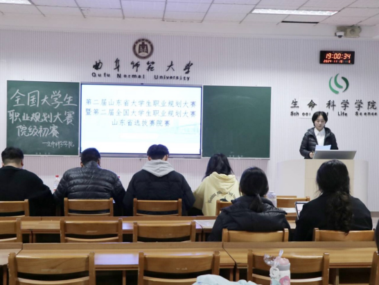 团委、学生会11月15日在生物楼232教室举行大学生职业规划大赛院级选拔赛。2024级辅导员杨申振出席并担任评委。
