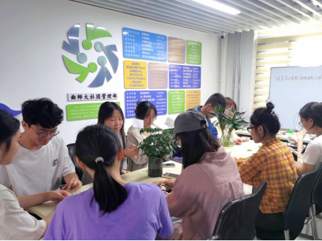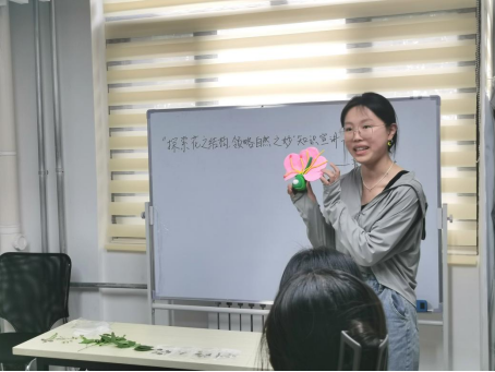 活动伊始,菁蕙学社的社员对植物标本进行生动讲解,并和同学们共同学习植物标本的制作过程。菁蕙学社社长借助花的生物模型教具为同学们深入阐释花的结构。在活动的最后,同学们亲自动手现场制作植物标本。
