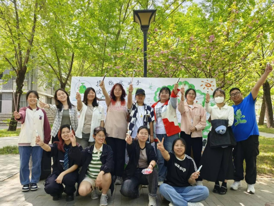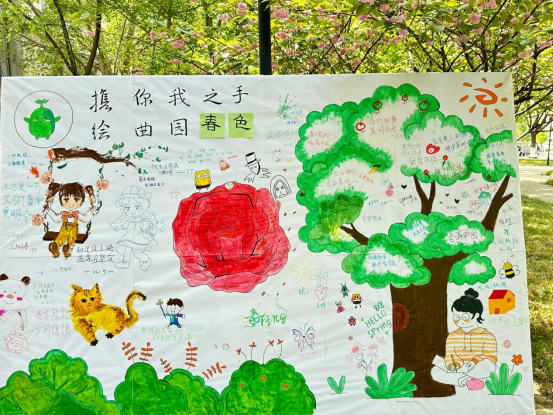 后花园展开以春为主题的绘画接力活动,画笔在每个人手中飞舞,用一笔一划画出独属于曲园人的美好春天。画板上点点泼墨是春之感悟,自由而洒脱;勾勒的斑斓图画,定格春之美好。历经三小时,春之画卷绘制作完毕,部分参与此次活动的师生及工作人员共同合影留念,将这份春日美好放置于后花园进行展览。本次活动圆满结束。