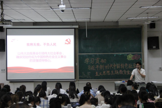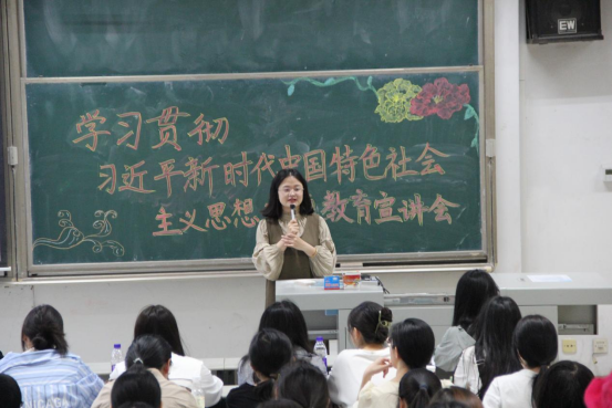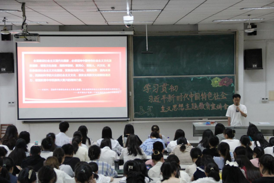 于综合楼101教室召开“学习贯彻习近平新时代中国特色社会主义思想学生宣讲团”宣讲活动,宣讲团成员边爽、唐金武、田昭霖为同学们开展宣讲。活动由外国语足球论坛