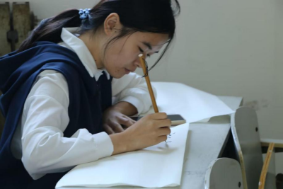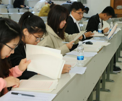 2023级、2022级、2021级全体同学。比赛开始前,由主持人强调比赛规则及注意事项,选手根据编号入座并在规定时间内完成指定的书写作品。比赛开始后,同学们聚精会神,钢笔字横撇竖捺精练传神,毛笔字起笔挥毫行云流水,粉笔字起顿行收挥洒自如,用精彩的现场表现向我们展示了自己卓越的书法功底,将中华文化的博大精深展现得淋漓尽致,得到了评委们的一致好评。