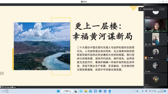 活动伊始,主持人宣读注意事项。随后,种子宣讲团各成员结合党的二十大精神,依次开展以“黄河流域生态保护和高质量发展”为主题的生态文明教育宣讲,以青年之声述时代之责。刘文静老师根据讲解内容逐一提出修改意见,种子宣讲团成员们认真聆听并加以记录,以便后续修改完善。最后,刘文静老师对本次宣讲评课活动进行了总结。她指出,黄河流域生态保护和高质量发展是重大国家战略,希望“种子宣讲团”成员以习近平总书记在深入推动黄河流域生态保护和高质量发展座谈会上的重要讲话精神为指引,进一步增强责任感和使命感,充分发挥师范生授课技能优势,锤炼自身的眼力、脑力、笔力和脚力,主动深入青年开展宣传宣讲,在全校范围内起到良好的辐射带动作用。